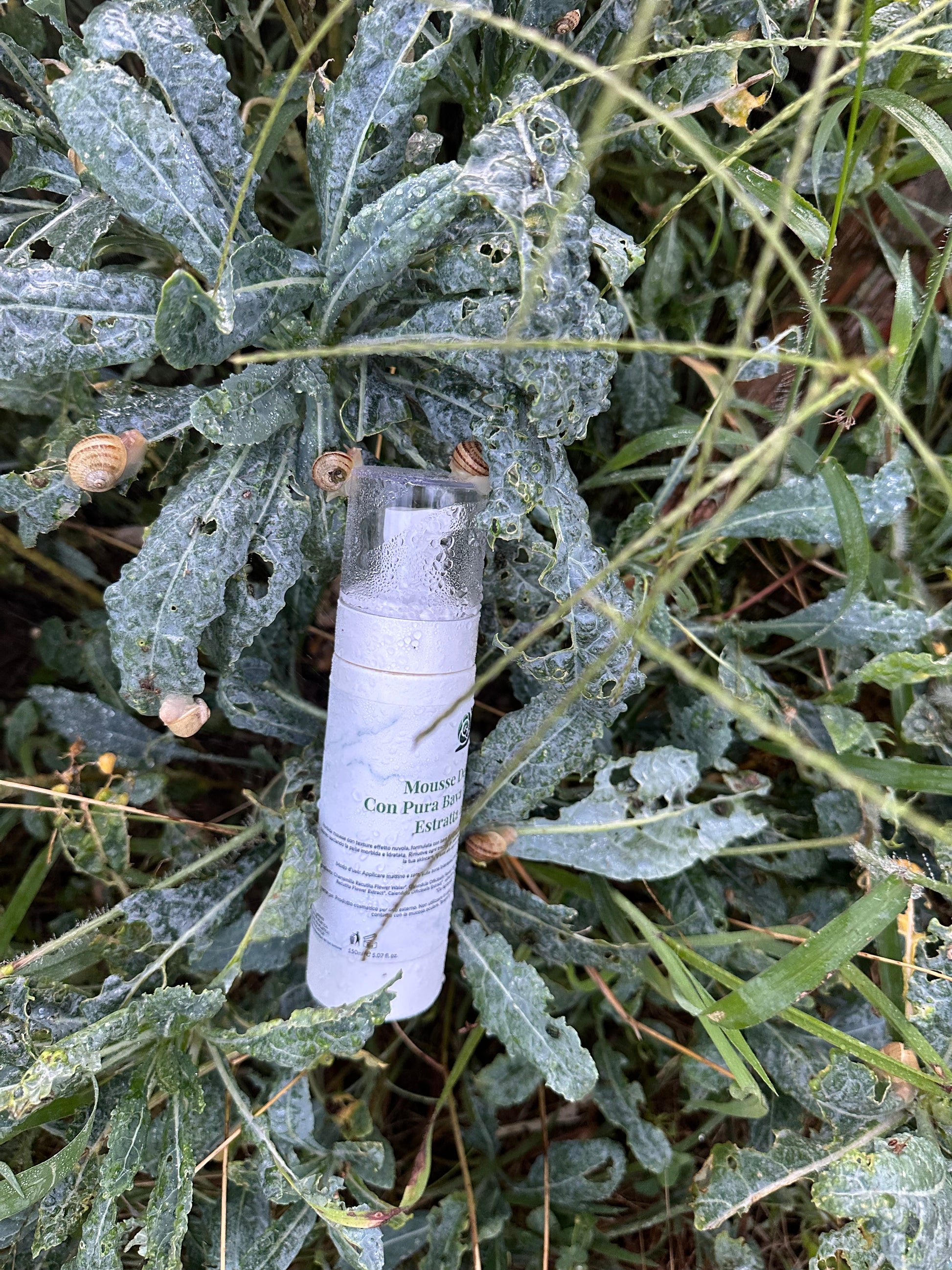 Mousse Detergente con Bava di Lumaca estratta a mano, 100% Ingredienti di origine naturale